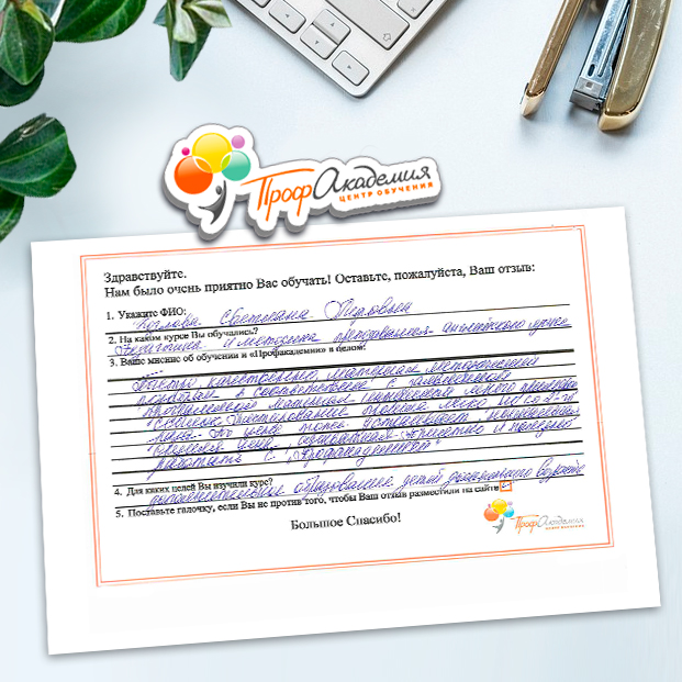 Обучение в Профакадемии прохожу не в первый раз. Все очень нравится. Предоставляется богатый обучающий материал. И хотя мы , педагоги-практики, очень полезно освежить в памяти теоретический материал, благородя лекциям и видео. Все доступно и понятно. Спасибо!